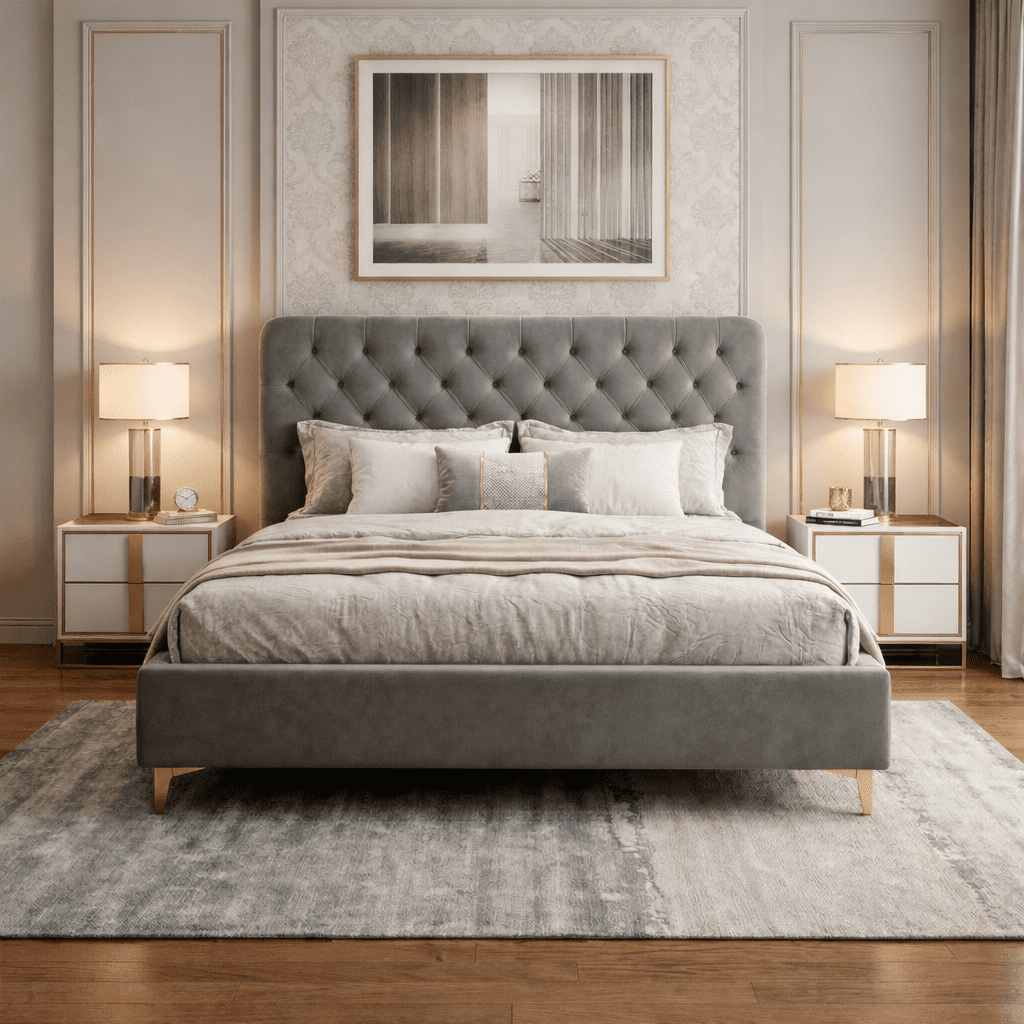 upholstered bed grey