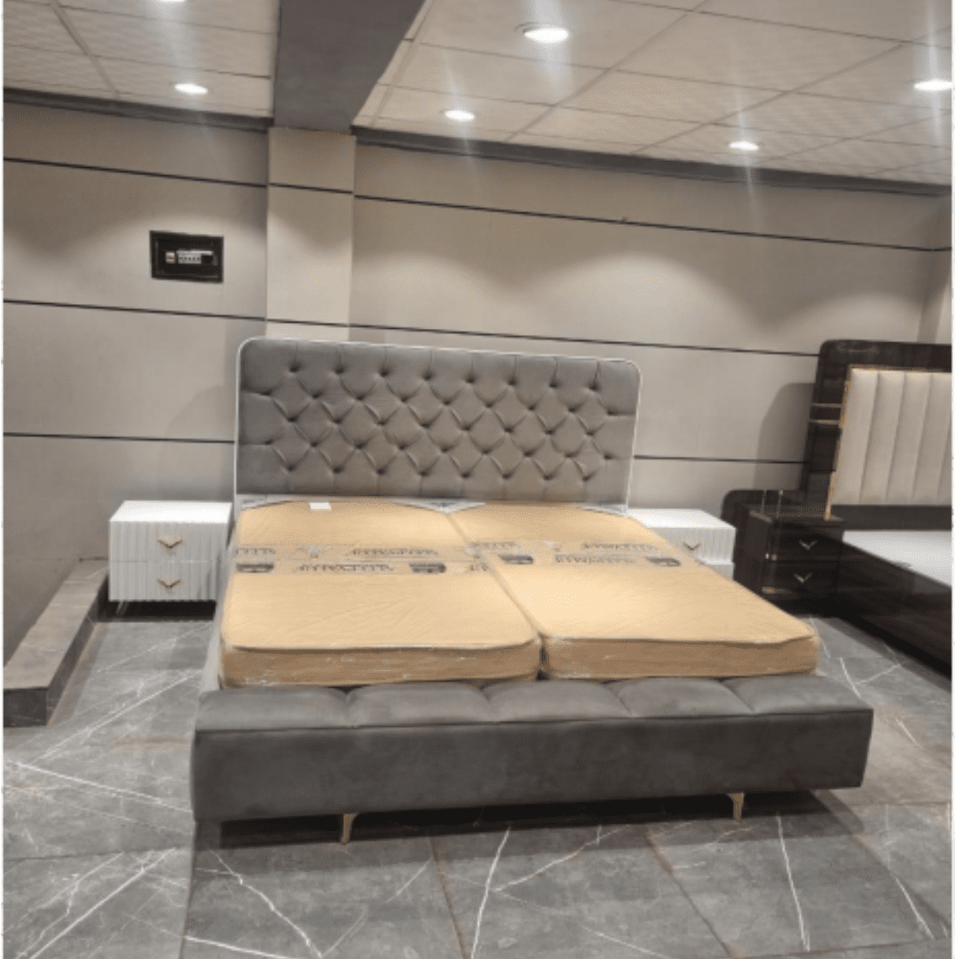 • upholstered bed grey