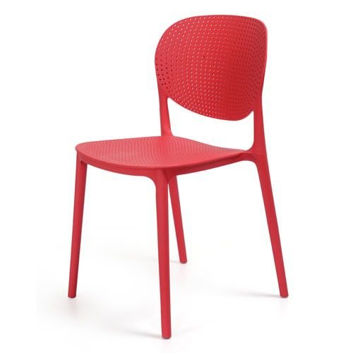 Modern gray chair with a curved perforated backrest and clean-lined design, ideal for cafes, restaurants, dining rooms, or collaborative spaces.