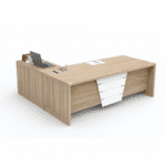 The Project Factory L Type Office Table in Wooden Chocolate Brown and White Finish offers a spacious and elegant solution for executive offices. Designed to maximize workspace, this L-shaped desk features a thick 25 mm PLPB tabletop complemented by sturdy 17 mm panels throughout the rest of the construction. It includes one shutter and two open section units, providing organized storage and easy access to office essentials. A 4-inch stainless steel finish handle adds a touch of modern sophistication, while the multipurpose (M.P.) lock ensures security of important documents and belongings. The combination of chocolate brown and white finishes creates a stylish and professional aesthetic that enhances any executive workspace.