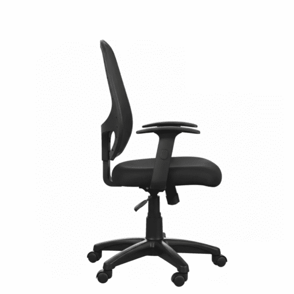 Project Factory offers a black revolving office chair with net mid back, fixed height handle, and plastic base, designed for ergonomic comfort and professional style.