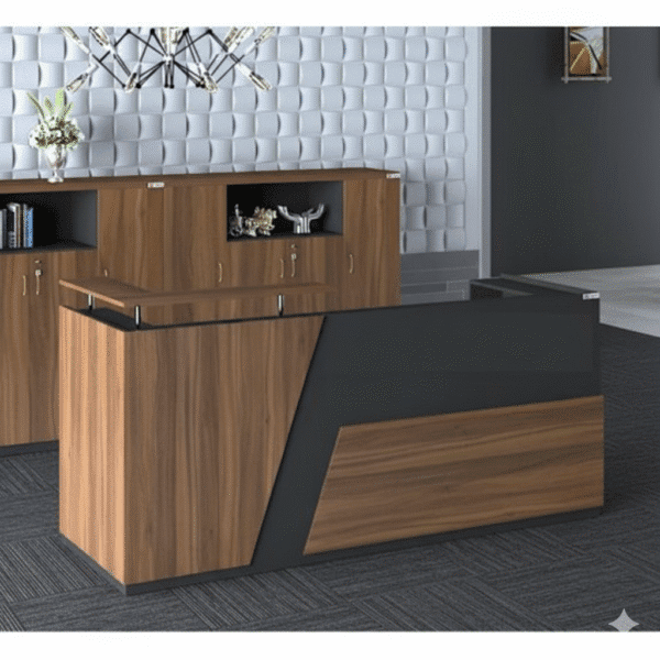 Teak wooden finish offers classic elegance and professional appeal to reception areas.