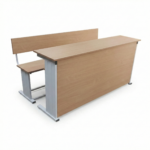The desk top and front panel are made using high-quality laminated wooden boards, providing a smooth writing surface and a clean, modern look. The structure is supported by a heavy-duty mild steel frame, ensuring excellent stability and load-bearing strength for daily academic use. The integrated bench offers comfortable seating with proper back support for students.