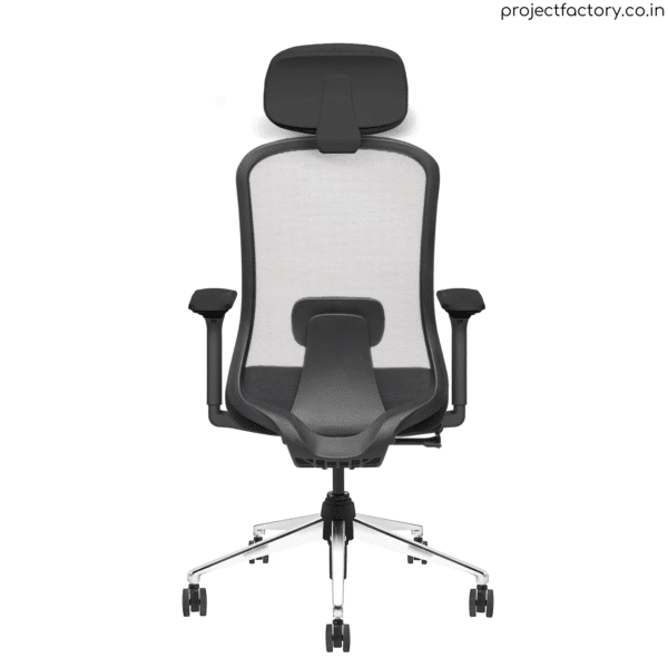 Project Factory Tron Lite Executive Chair with YUVA mesh technology, available in HB/MB variants, 4D PU armrests, 1D lumbar support, eco-friendly construction, auto weight mechanism, and crystal chrome base for modern workspace comfort.
